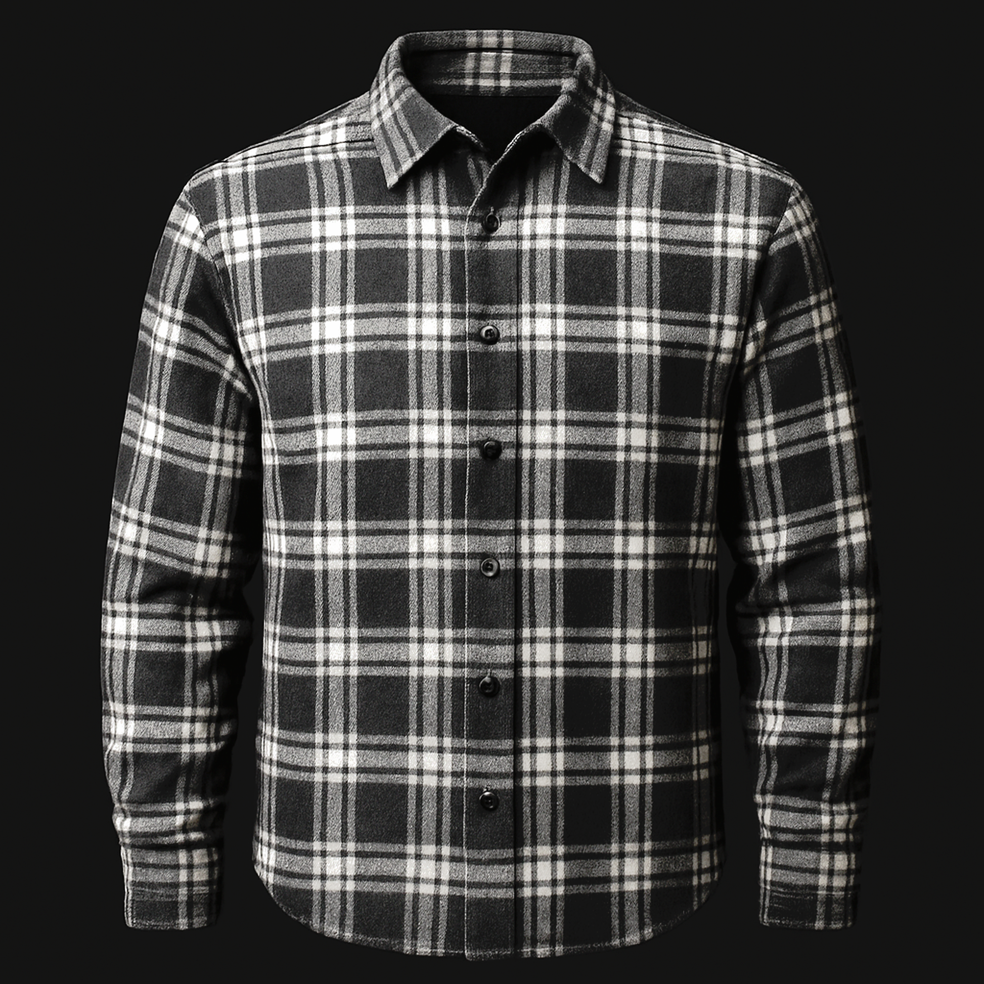 Heavyweight black-and-white plaid flannel with our DISAPPEAR outline artwork on the back.
